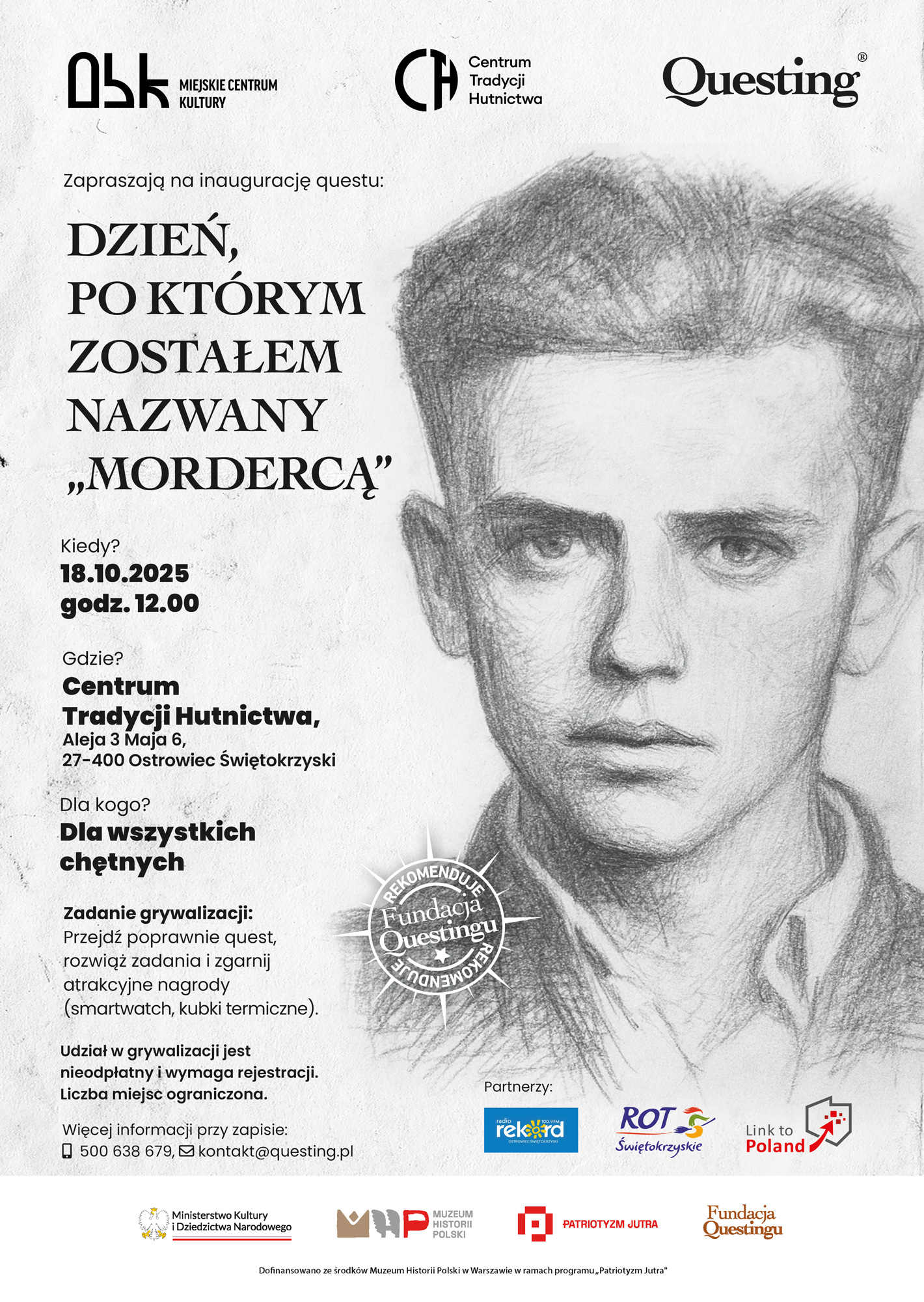 Już 18 października o godz. 12:00 w Centrum Tradycji Hutnictwa w Ostrowcu Świętokrzyskim rusza wyjątkowa gra terenowa „Dzień, po którym zostałem nazwany mordercą”. To premierowy quest przygotowany przez Fundację Questingu w ramach projektu „Ojczyzna piórem wyśniona”
