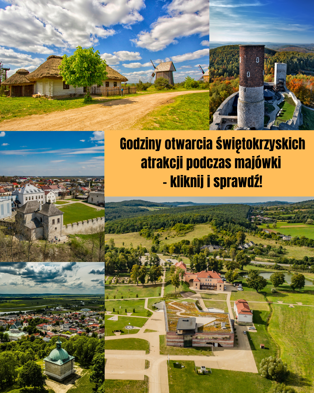Zwiedzaj Świętokrzyskie w majówkę!2026.04.27Udostępnij:Zwiedzaj województwo świętokrzyskie podczas majowego weekendu! Sprawdź, w jakich godzinach otwarte są atrakcje i zobacz, które miejsca przygotowały ciekawe wydarzenia.