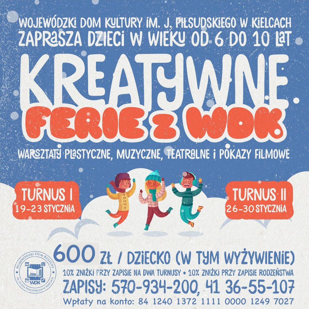 Wojewódzki Dom Kultury im. J. Piłsudskiego w Kielcach zaprasza dzieci w wieku od 6 do 10 lat na cykl zimowych zajęć pełnych sztuki i dobrej zabawy.