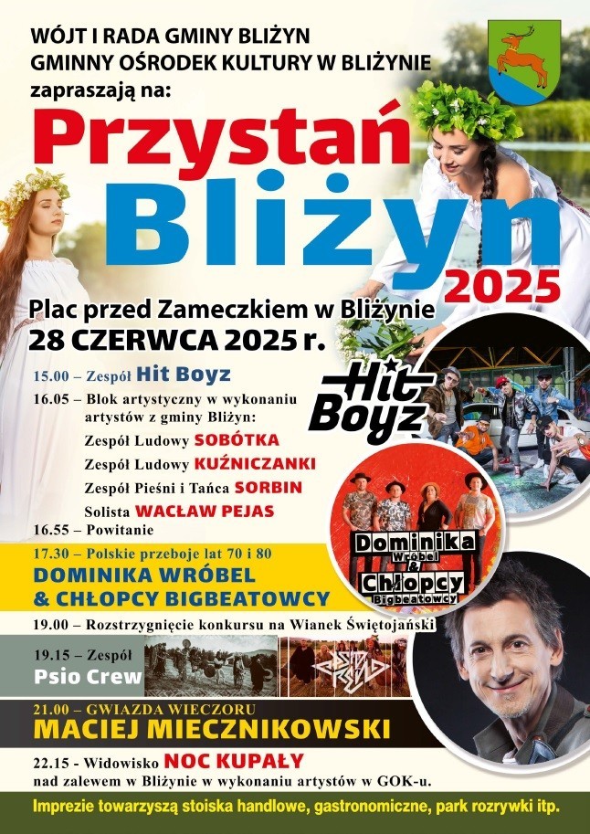 Gmina Bliżyn zaprasza na plenerową imprezę Przystań Bliżyn 2025, która odbędzie się w sobotę 28 czerwca na Placu przed Zameczkiem. Początek wydarzenia zaplanowano na godzinę 15:00. Wstęp jest bezpłatny.
