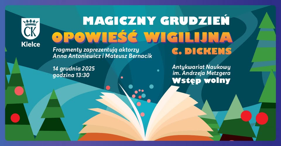 Już 14 grudnia w Kielcach odbędzie się wyjątkowe wydarzenie - świąteczne czytanie "Opowieści wigilijnej" Charlesa Dickensa. Aktorzy Teatru im. Stefana Żeromskiego w Kielcach - Anna Antoniewicz oraz Mateusz Bernacik przeniosą uczestników do ponadczasowej historii o życiu, przemianie, życzliwości oraz prawdziwym znaczeniu świąt.