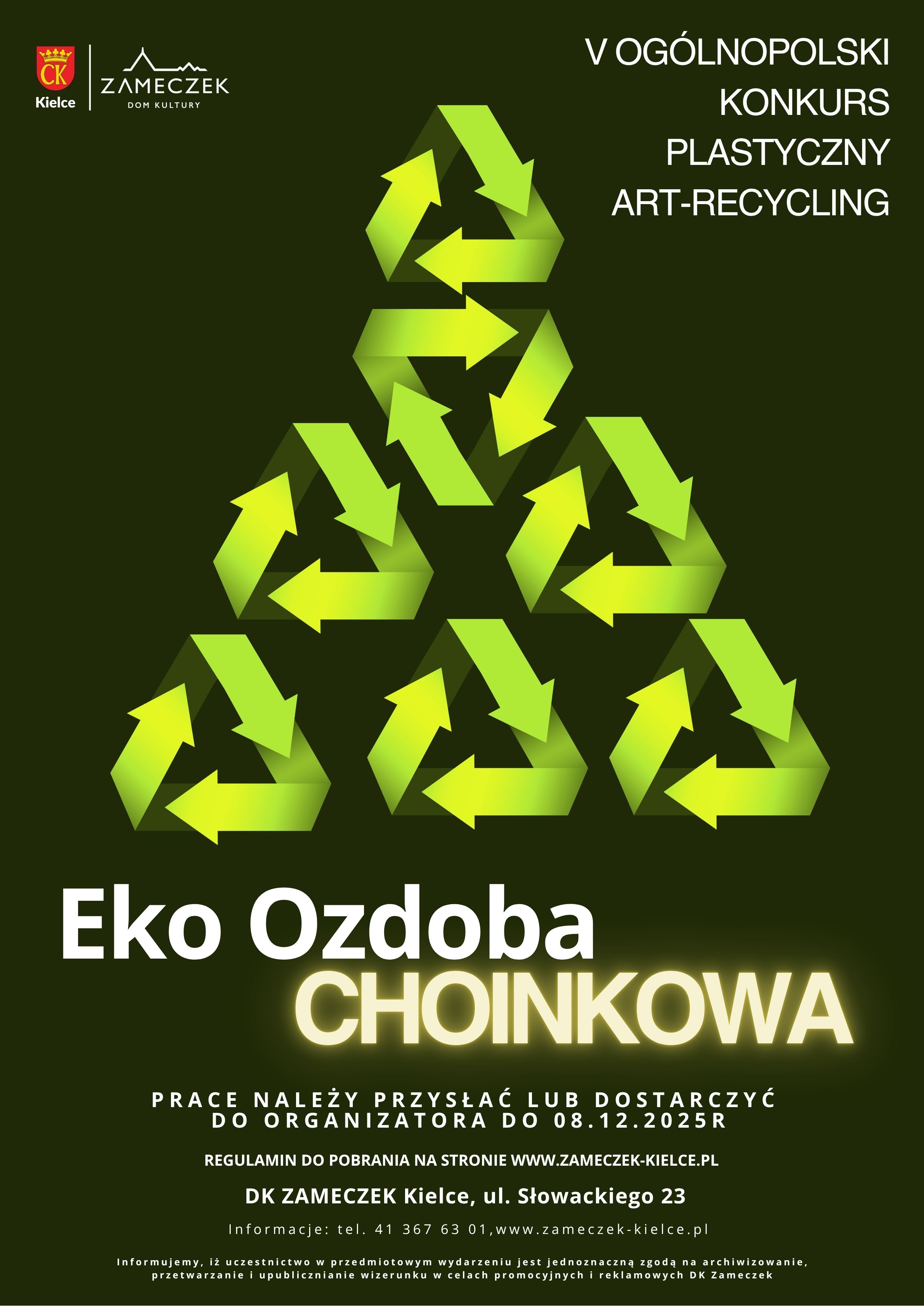 Regulamin oraz karta zgłoszeniowa do pobrania: https://zameczek-kielce.pl/v-ogolnopolski-konkurs-plastyczny-eco-ozdoba-choinkowa/