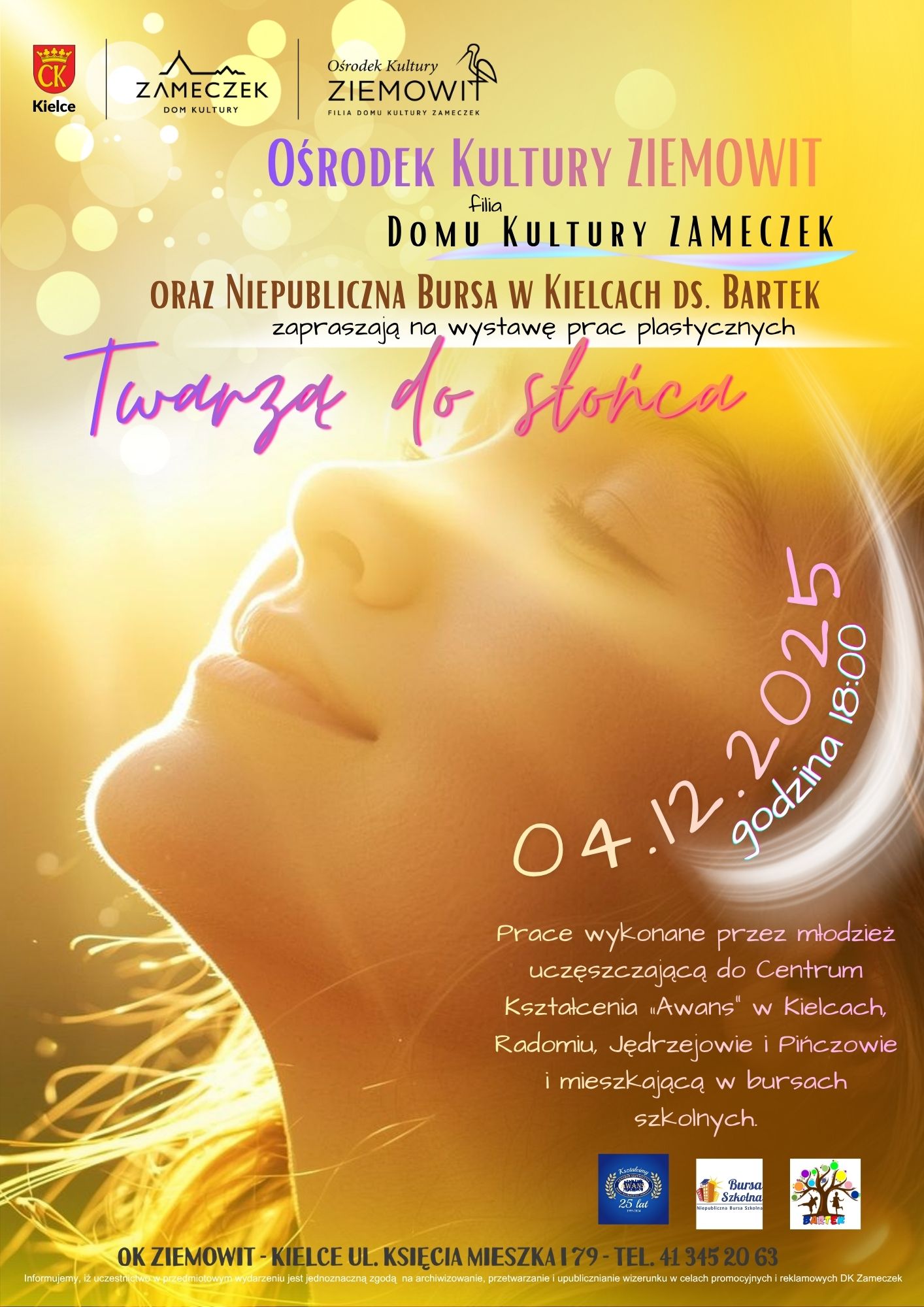 Ośrodek Kultury Ziemowit oraz Niepubliczna Bursa w Kielcach ds. Bartek. Serdecznie zapraszają na wystawę prac plastycznych pt. "Twarzą do słońca"!