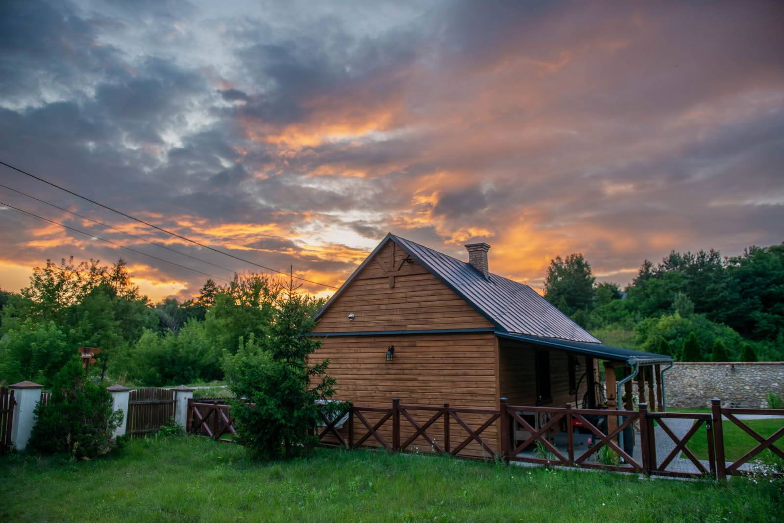 Kuchnia jest w pełni wyposażona – znajduje się w niej m.in. lodówka, zmywarka, płyta indukcyjna, mikrofalówka, toster i ekspres do kawy. Domek posiada klimatyzację. Okolica jest spokojna i cicha, sprzyja wypoczynkowi i relaksowi. To idealne miejsce na poranną kawę na dużym lub mniejszym tarasie, spacery po lesie i odpoczynek z dala od miejskiego zgiełku.