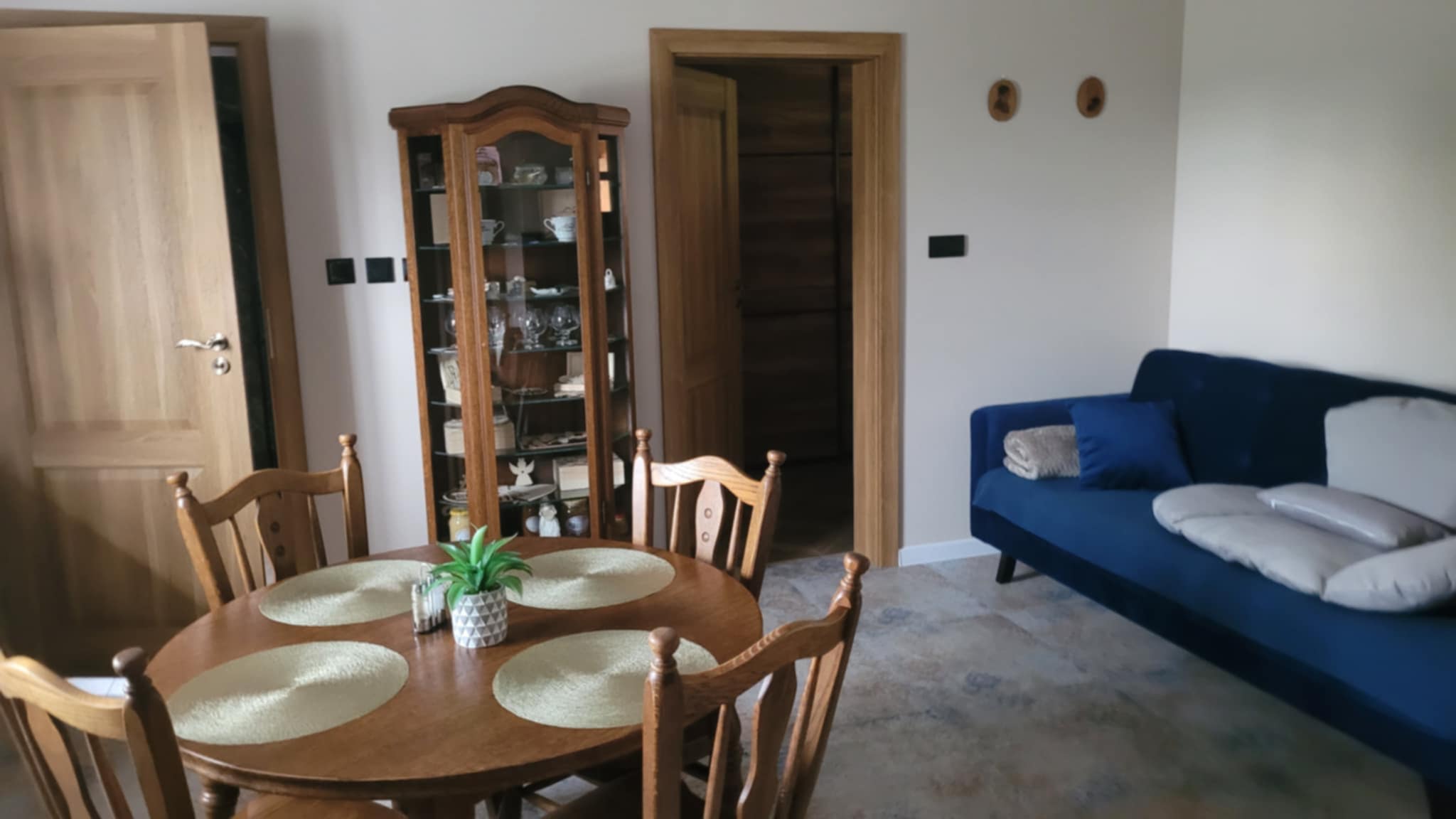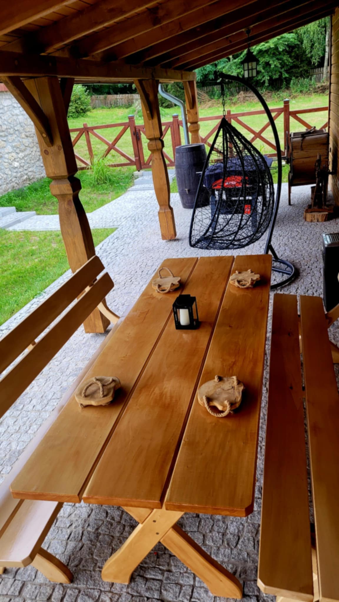 Domek wraz z całą działką pozostaje do wyłącznej dyspozycji Gości. Na terenie posesji dostępny jest bezpłatny parking na samochód. Działka jest duża i zielona – z tyłu znajduje się bezpośrednie wyjście do lasu, a po drugiej stronie drogi, około 100 metrów dalej, płynie rzeka Kamienna. Do dyspozycji Gości jest miejsce na grill i ognisko oraz domek zabawowy dla dzieci.