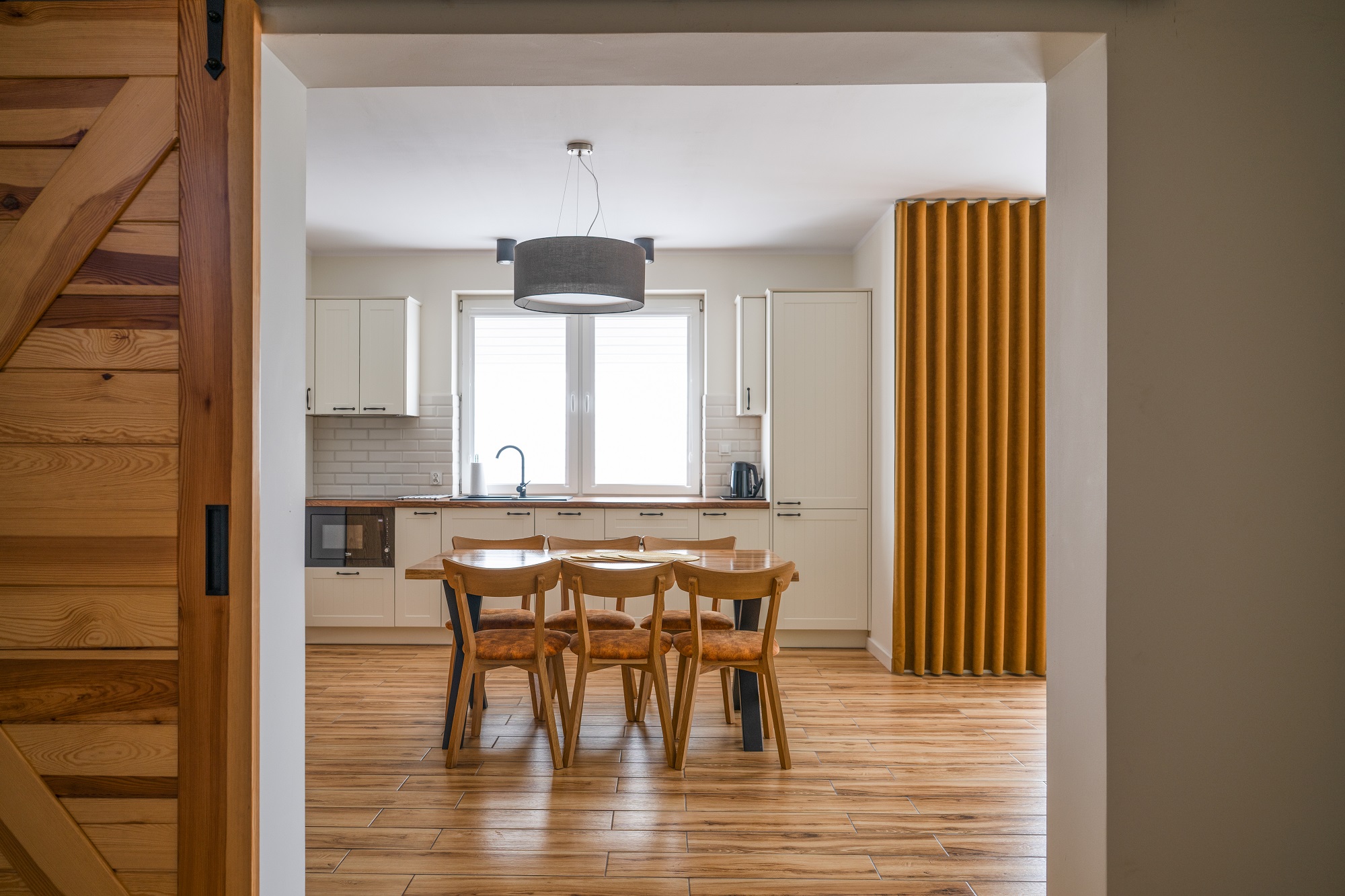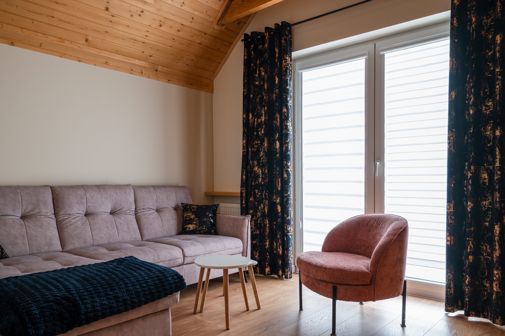 - Wspólny salon z jadalnią – przestronny, idealny do wspólnych posiłków i relaksu.