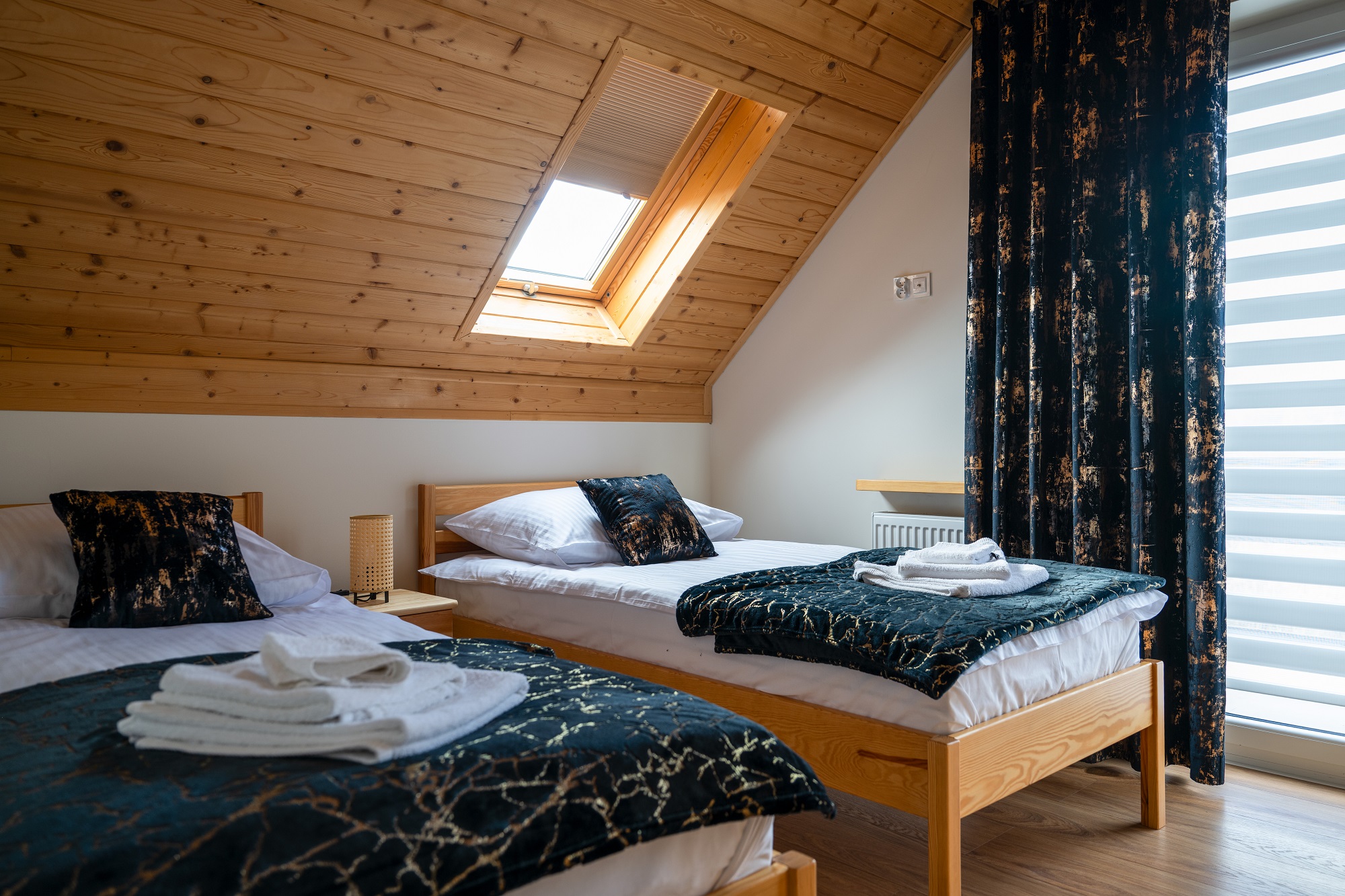 - 5 niezależnych pokoi, każdy z prywatną łazienką z prysznicem.