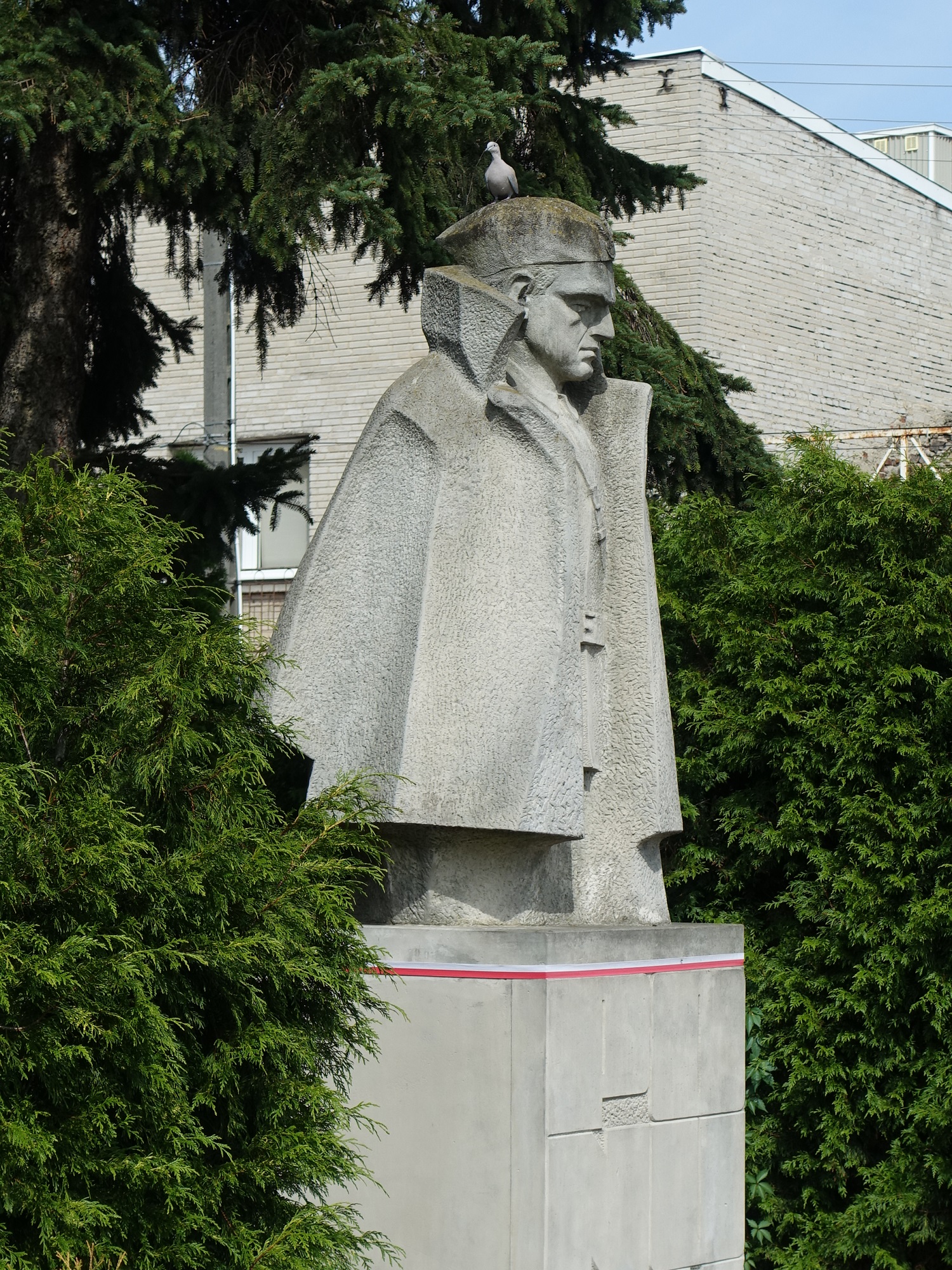 Fot. Pomnik mjr. Jana Piwnika "Ponurego" na wąchockim rynku, Urząd Miasta i Gminy w Wąchocku