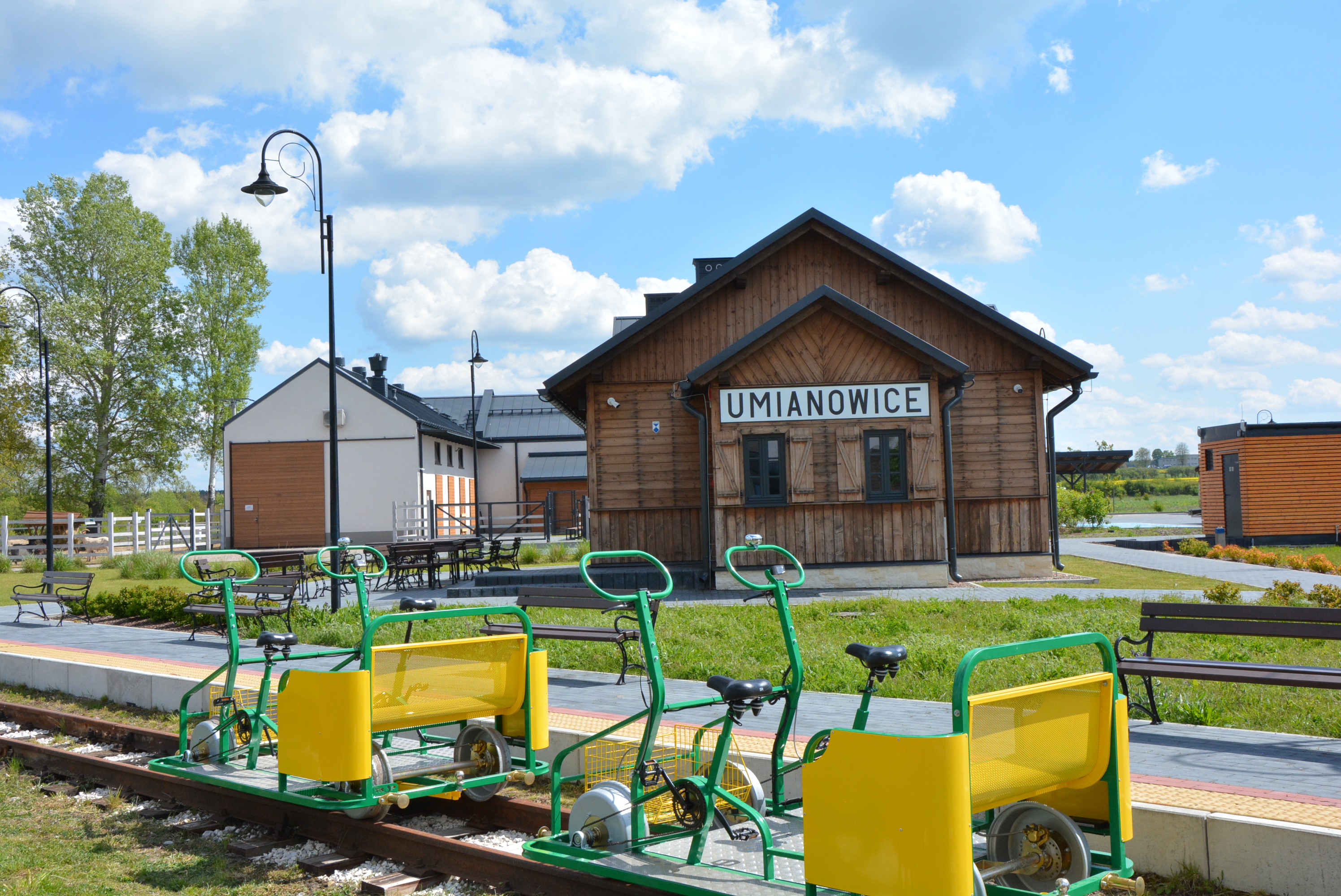 Przejazd drezynami odbywa się w ramach ścieżki edukacyjno-przyrodniczej „drezynami rowerowymi do natury”, po torach kolejki wąskotorowej na trasie Umianowice - Hajdaszek – Umianowice (cała trasa 5km). Do dyspozycji uczestników ruchu turystycznego jest dostępnych 9 drezyn rowerowych ze wspomaganiem elektrycznym, w tym jedna przystosowana do przewożenia osoby niepełnosprawnej na wózku inwalidzkim. Każda drezyna składa się z platformy i dwóch miejsc (siodełek) do pedałowania oraz ławki z miejscami do siedzenia i kosza na bagaże. Drezyna przeznaczona jest do przewozu maksymalnie 4 osób dorosłych lub 2 dorosłych i 3 dzieci.