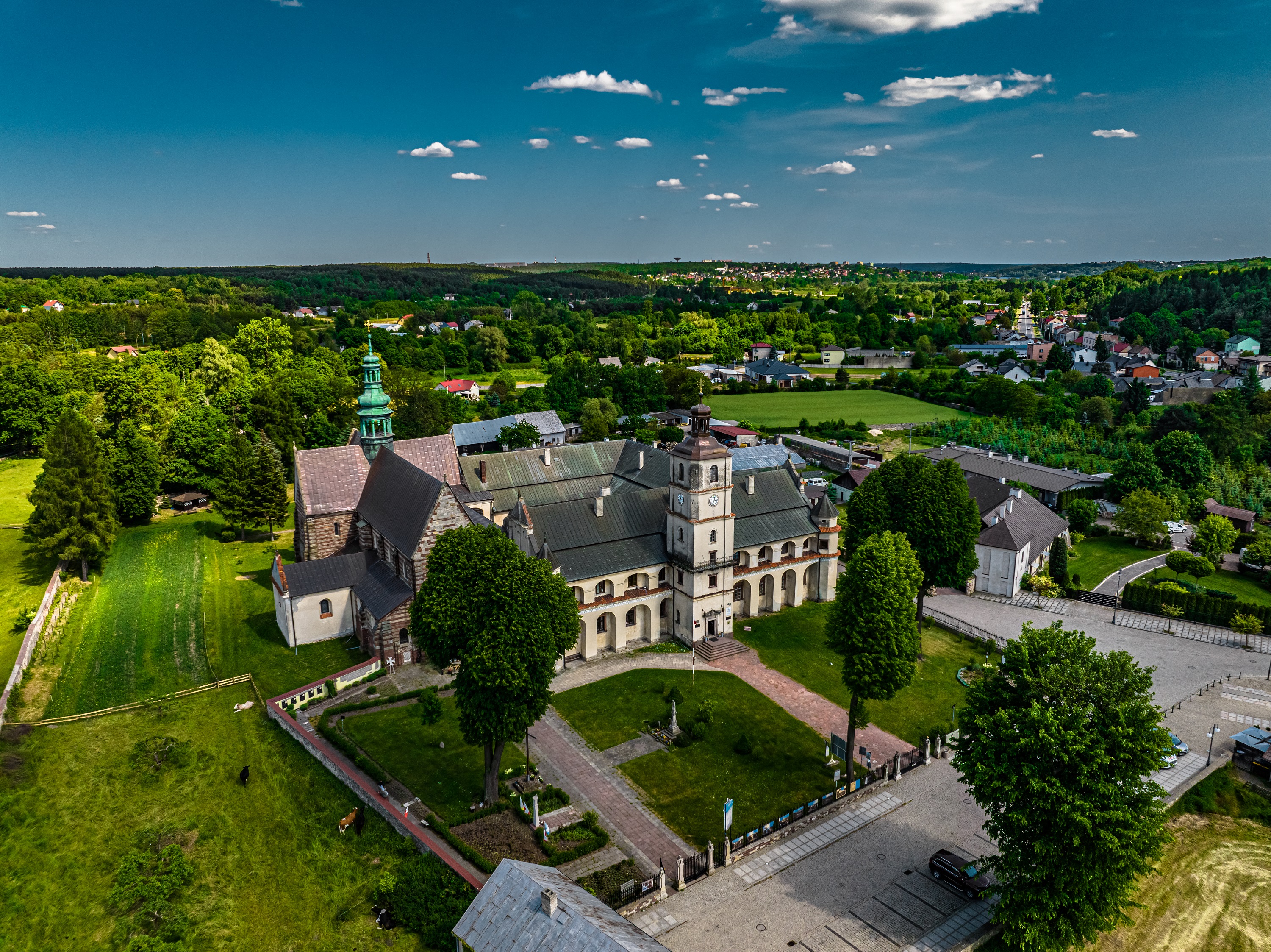 Wąchock – miejscowość niedaleko Starachowic słynie nie tylko z dowcipów, ale przede wszystkim z opactwa cystersów sprowadzonych tu w 1179 r. z burgundzkiego opactwa Morimond przez biskupa krakowskiego Gedeona herbu Gryf. W latach 1218-1239 włoski warsztat cysterski br. Simona wzniósł tu kamienne opactwo wzorowane na architekturze toskańskiej. Do dziś przetrwał pierwotny, romański układ zespołu klasztornego z zachowanym kapitularzem, fraternią i karcerem. W latach późniejszych zespół klasztorny wielokrotnie przebudowywano. Przybywający tu miłośnicy architektury sakralnej podziwiać mogą późnoromański kościół klasztorny zbudowany na planie krzyża łacińskiego z dwubarwnych ciosów kamiennych. W krużgankach znajduje się krypta grobowa mjra Jana Piwnika „Ponurego” – legendarnego dowódcy Świętokrzyskich Zgrupowań AK, a w budynku klasztornym obok furty mieści się Muzeum O. Cystersów powstałe w oparciu o unikalną kolekcje pamiątek z okresu powstań narodowych, zgromadzonych przez ks. Ppłk Walentego Ślusarczyka. Zespół Opactwa Cystersów w Wąchocku jest jednym z najważniejszych obiektów europejskich szlaków kulturowych – Szlaku Cysterskiego i Romańskiego. W Wąchocku warto także zobaczyć pomnik sołtysa oraz XIX – wieczny pałac Schoenberga.
