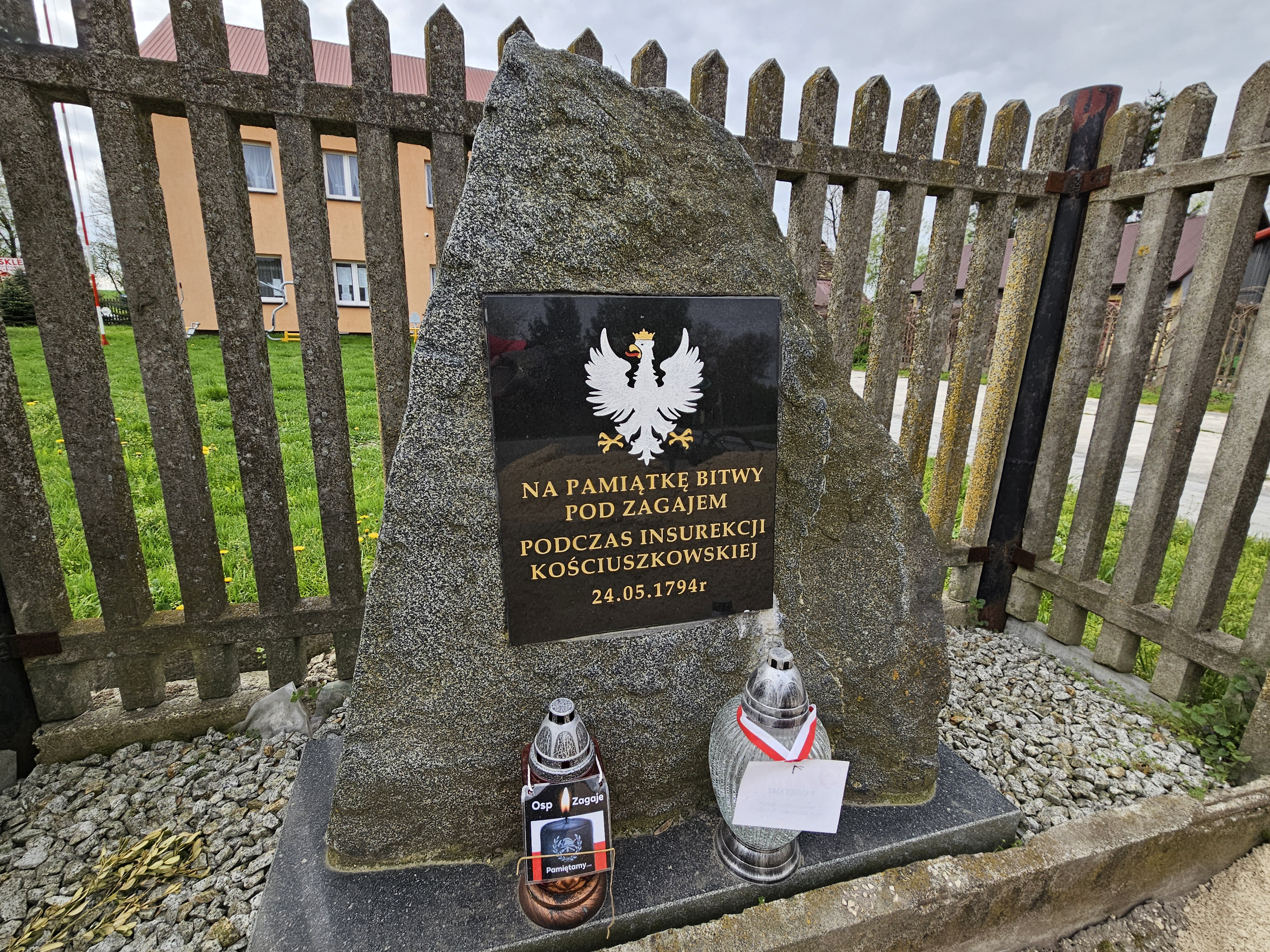 Pomnik bitwy pod Zagajem 1794 r. – pomnik upamiętniający bitwę stoczoną 24 maja 1794 r. przez wojska Tadeusza Kościuszki z wojskami rosyjskimi gen. Fiodora Denisowa. Po zwycięskiej potyczce, w której po polskiej stronie uczestniczyło około 120 kawalerzystów, wojska kościuszkowskie przemaszerowały z Konar przez Zagaje w kierunku Jędrzejowa. Polegli zarówno Polacy, jak i Kozacy zostali pochowani we wspólnej mogile przy drodze Zagaje – Łysaków. W miejscu pochówku postawiono krzyż, który stał do lat 30. XX w. W wyniku przeprowadzonej reformy rolnej po II wojnie światowej, mogiła wraz z krzyżem została doszczętnie zniszczona. Krzyż został ponownie postawiony w miejscu mogiły w roku 2015.