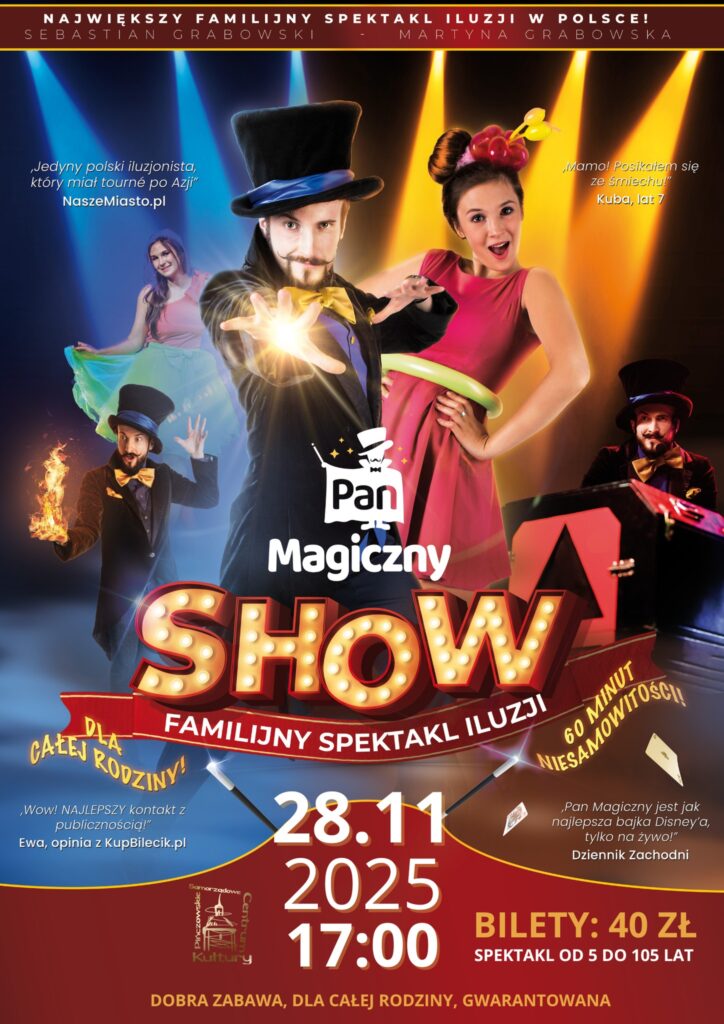Już pod koniec listopada w Pińczowie odbędzie się familijny spektakl iluzji, czyli Pan Magiczny Show! Znajdź na mapieFamilijny spektakl iluzji - Pan Magiczny Show w PińczowieUdostępnij: