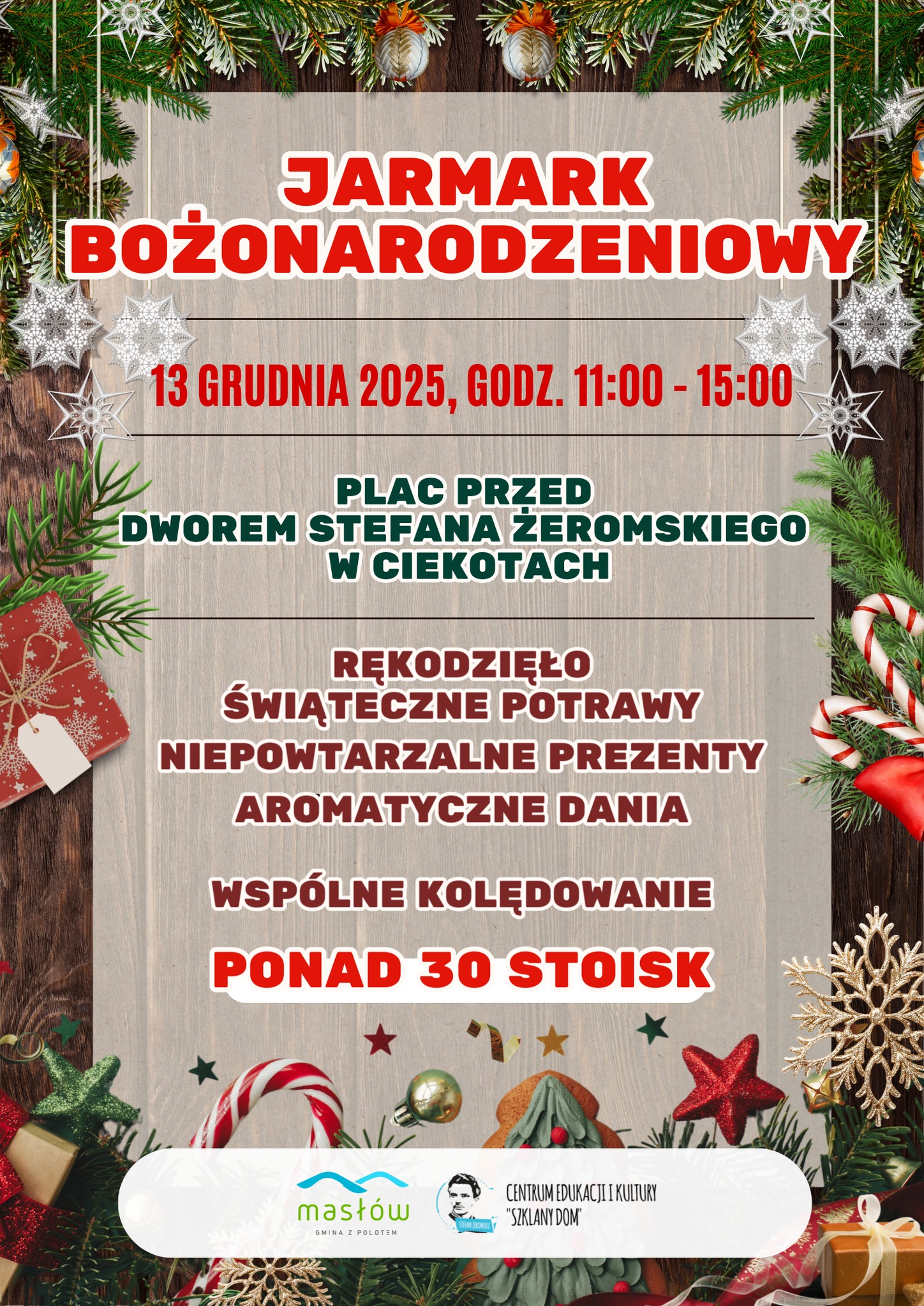 Świąteczny klimat, kolędy, pyszne świąteczne potrawy, nietuzinkowe ozdoby to czeka na wszystkich, którzy w sobotę 13 grudnia pojawią się przed dworem Stefana Żeromskiego w Ciekotach.