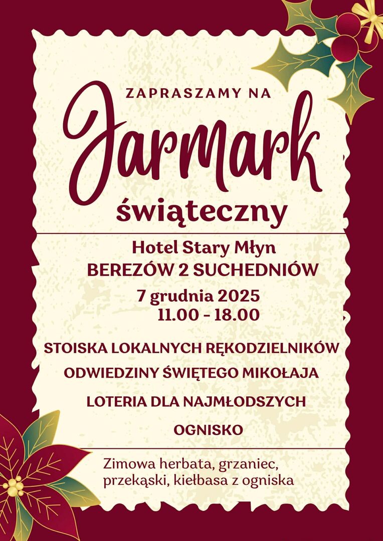 Hotel Stary Młyn w Suchedniowie zaprasza na Jarmark Świąteczny, spotkanie z Mikołajem oraz wiele świątecznych atrakcji.Znajdź na mapieJarmark Świąteczny w SuchedniowieUdostępnij: