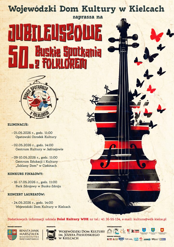 W 2026 roku odbędzie się jubileuszowa, pięćdziesiąta edycja Buskich Spotkań z Folklorem. To wyjątkowe wydarzenie nie tylko prezentuje najlepsze zespoły i wykonawców z regionu, ale jest także świętem tradycji – przekazywanej z pokolenia na pokolenie w muzyce, śpiewie, tańcu i gwarze.