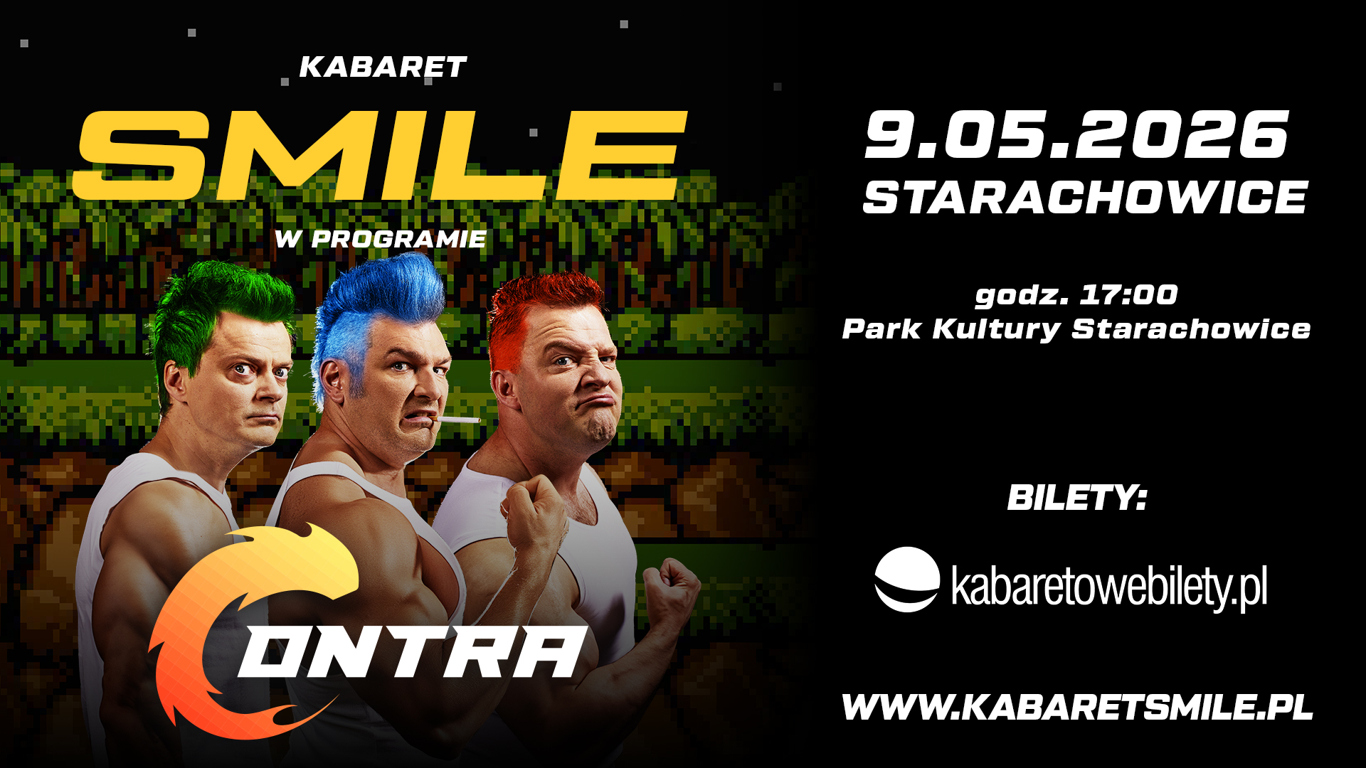 Po sukcesie trasy 20-lecia Kabaret Smile powraca w 2025 roku z nowym programem! W programie CONTRA zobaczymy różnice między pokoleniami, zestawienia technologii z tradycją, konflikty międzyludzkie, stereotypy i uprzedzenia, czy też kontrast między rzeczywistością, a światem mediów społecznościowych.