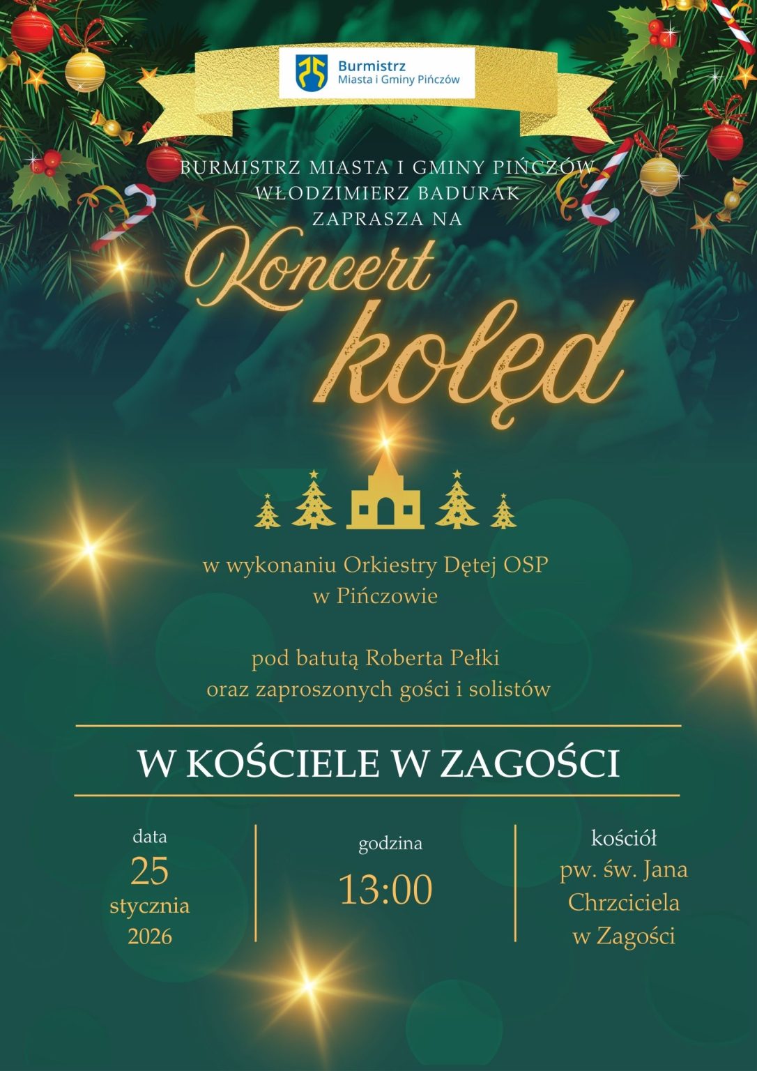 W niedzielę 25 stycznia w Zagości odbędzie się koncert kolęd w wykonaniu Orkiestry Ochotniczej Straży Pożarnej w Pińczowie i zaproszonych gości.Znajdź na mapieKoncert kolęd w ZagościUdostępnij: