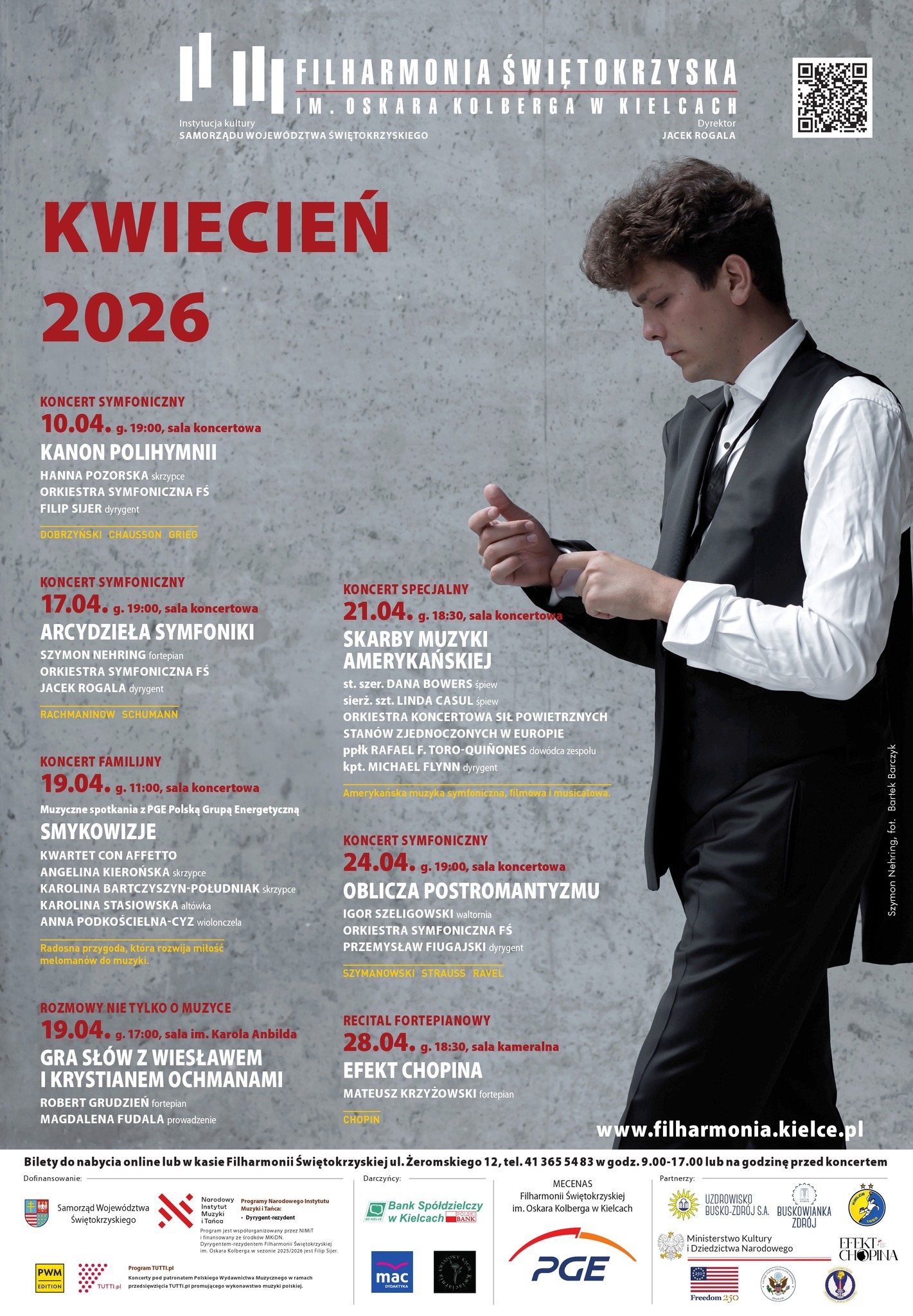 Koncert symfoniczny „Arcydzieła symfoniki” odbędzie się w dniu 17 kwietnia o 19:00 w sali koncertowej. Wystąpi Szymon Nehring na fortepianie z Orkiestrą Symfoniczną FŚ pod dyrekcją Jacka Rogali.
