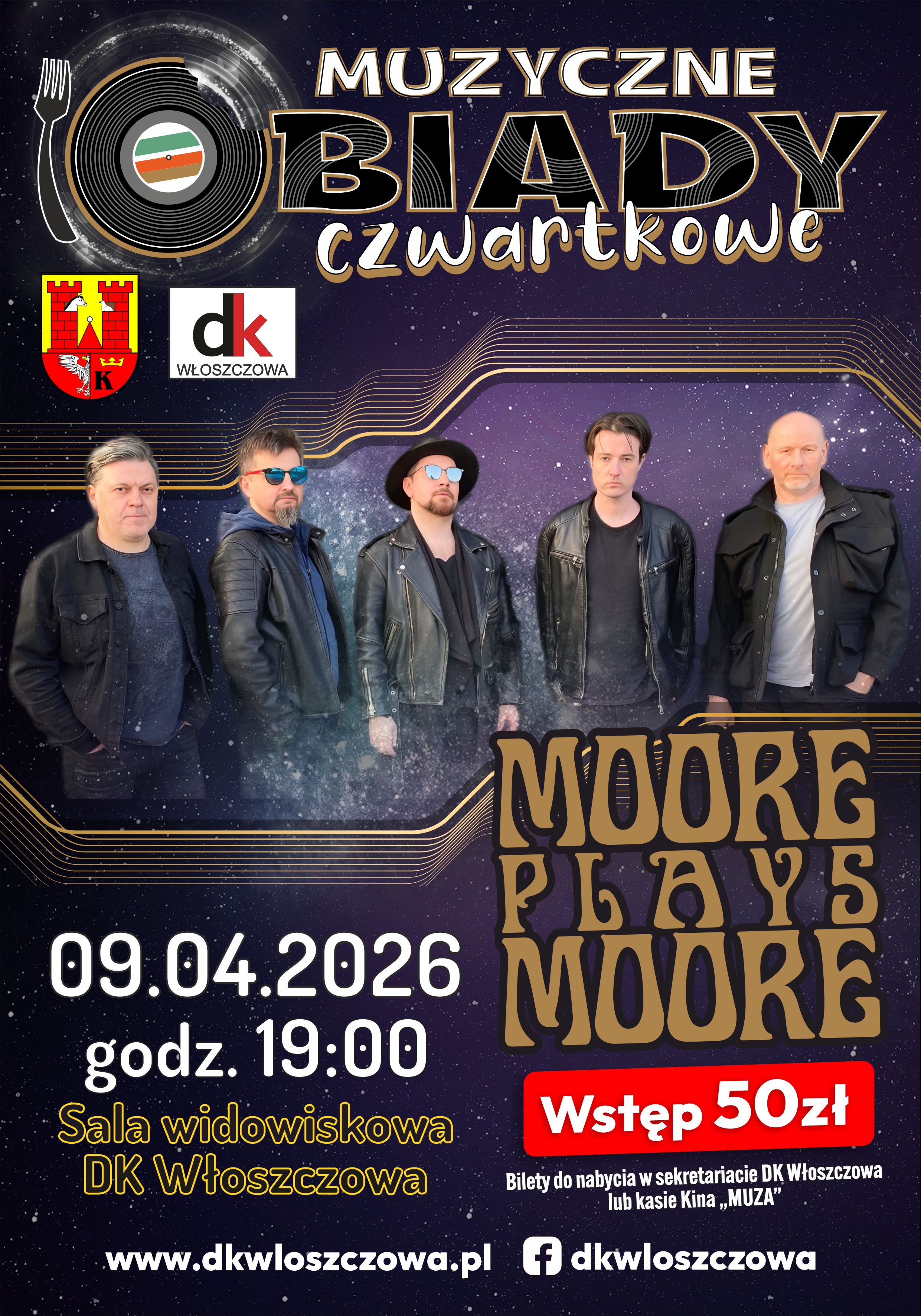 Już 9 kwietnia w ramach Muzycznych Obiadów Czwartkowych we Włoszczowie wystąpi zespół Moore Plays Moore, który poświęcony jest twórczości legendarnego wokalisty Gary'ego Moore'a.