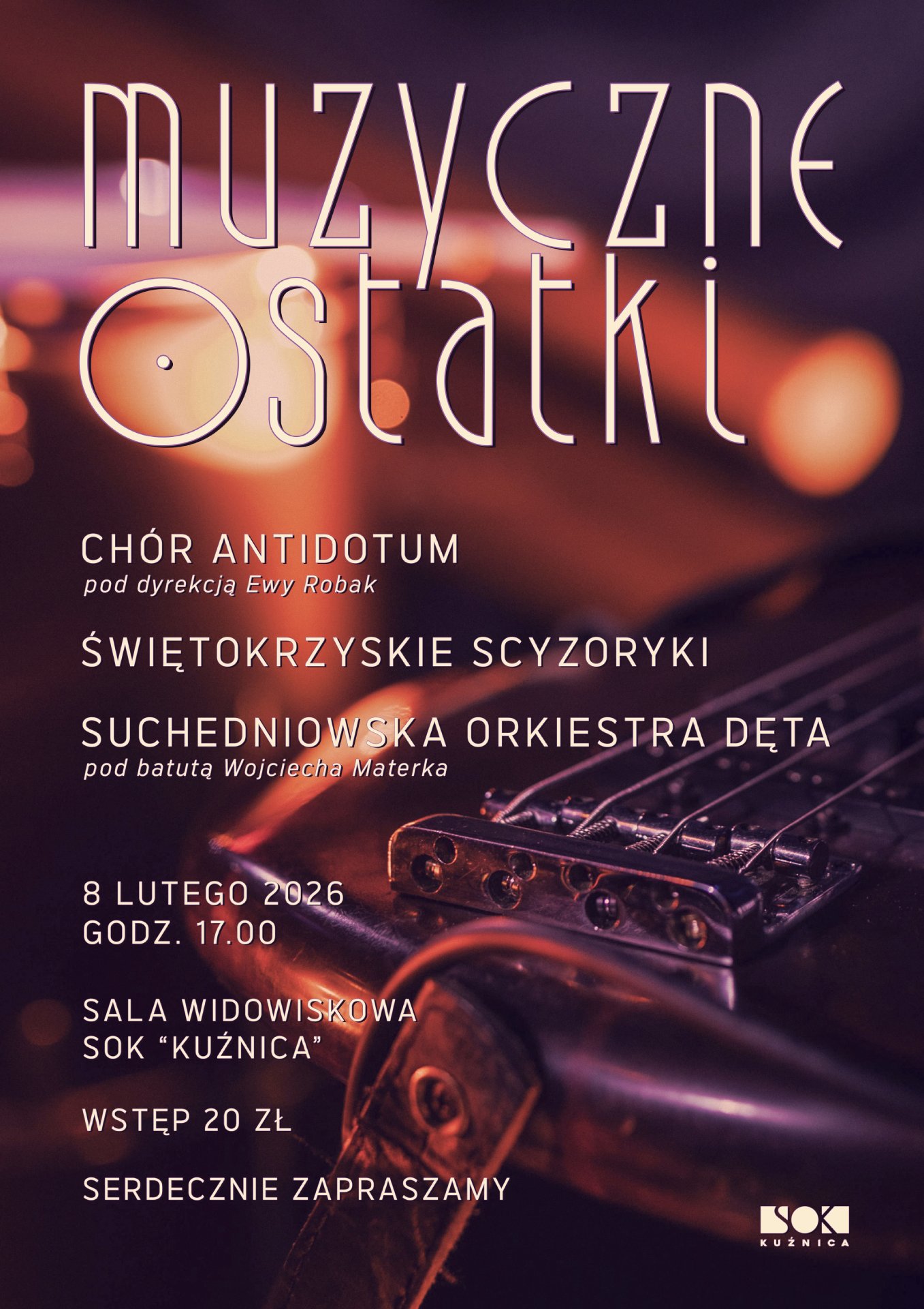 Suchedniowski Ośrodek Kultury "Kuźnica" w Suchedniowie serdecznie zaprasza na "Muzyczne Ostatki", które odbędą się w dniu 8 lutego 2026 r. o godz. 17:00 w sali widowiskowej.
