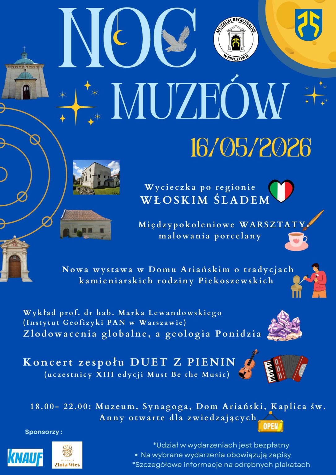 Noc Muzeów w Pińczowie zapowiada się wyjątkowo bogato i pełna ciekawych wydarzeń. Miasto przygotowuje program, który pozwala odkryć historię, sztukę i lokalne tradycje w różnych miejscach i formach.