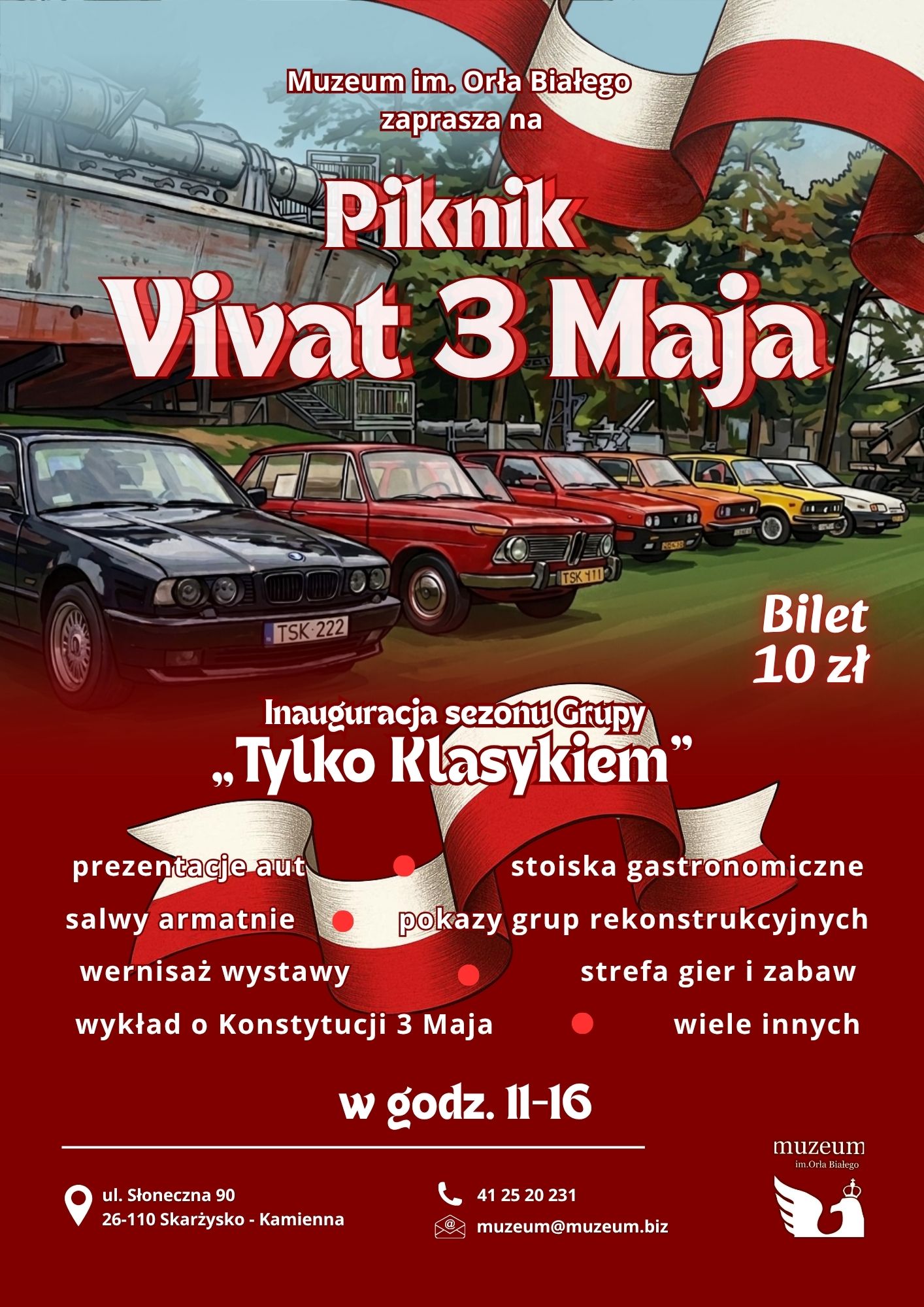 Muzeum im. Orła Białego w Skarżysku-Kamiennej serdecznie zaprasza na Piknik Vivat 3 Maja, który odbędzie się 3 maja w godz. 11:00-16:00. Podczas wydarzenia zaplanowano wiele atrakcji. Znajdź na mapiePiknik Vivat 3 Maja w Skarżysku-KamiennejUdostępnij: