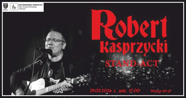Serdecznie zapraszamy na stand act Roberta Kasprzyckiego, który odbędzie się 29 marca o godz. 17:00 w Pałacyku Zielińskiego w Kielcach.