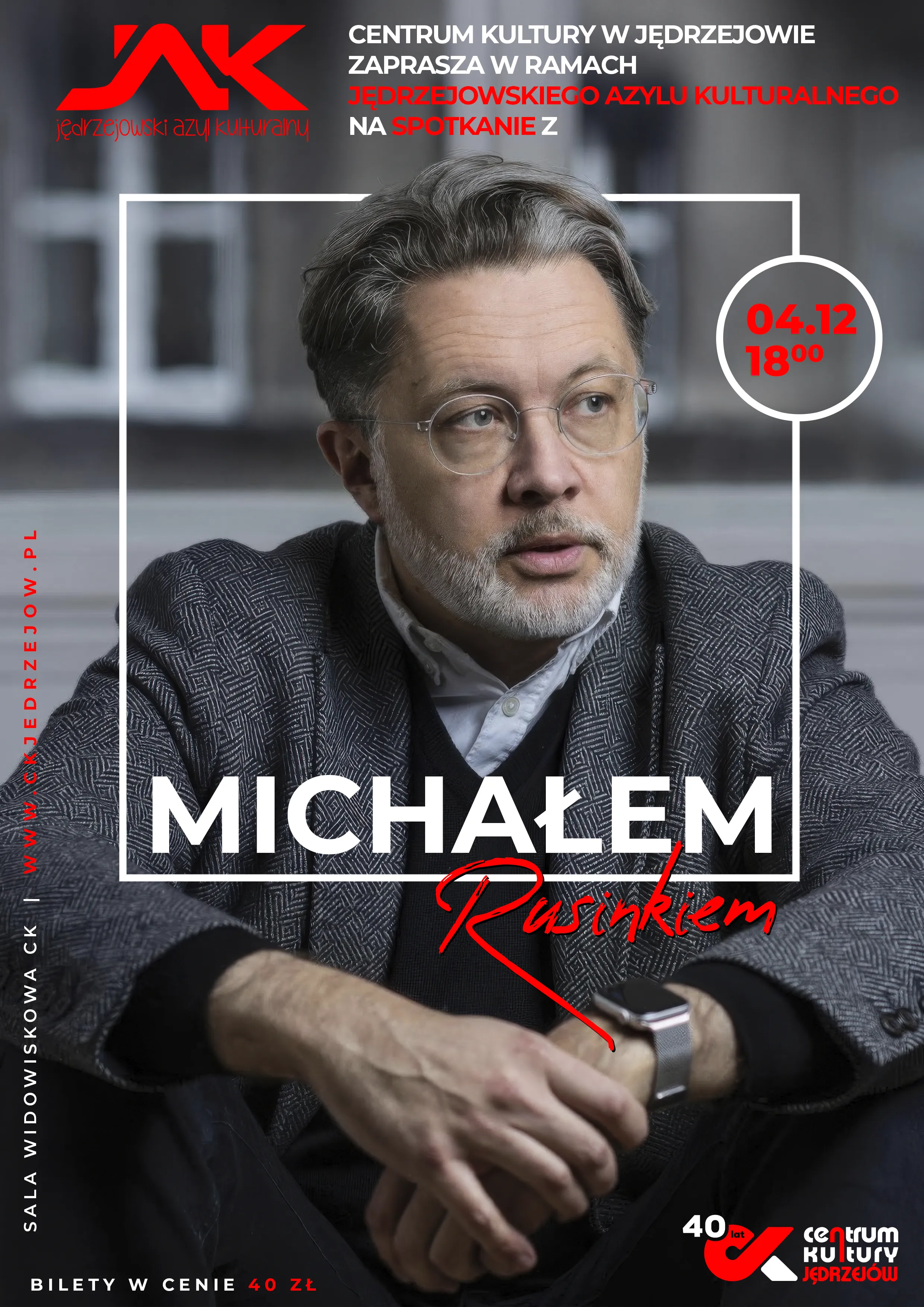 W sali widowiskowej Centrum Kultury w Jędrzejowie, w dniu 4 grudnia 2025, o godzinie 18:00 odbędzie się spotkanie z Michałem Rusinkiem – pisarzem, tłumaczem, byłym sekretarzem Wisławy Szymborskiej, a przede wszystkim człowiekiem, który potrafi mówić o języku w sposób fascynujący i wciągający.